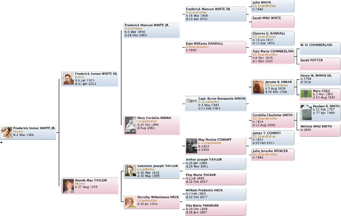 I encourage anyone viewing these pages to use the tree and media icons found on the Family Cards to view family trees and photos.